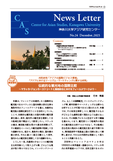 - アジア研究センター共同研究「アジアにおけるツーリズム・マーケティング」公開研究会(2025.12.18)